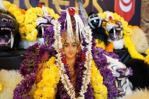 As Goddess Sharada and the Navadurgas emerge from the Kudroli Gokarnanatheshwara Temple during Mangalore Dasara, tiger dancers surge ahead. Their stripes echoing her power, their leaps her courage, their roars her arrival. To the thunder of chende drums, Durga’s myth becomes a living scene on the streets. Across the coast, at the Mangaladevi, Kateel Durgaparameshwari, and Kudupu Ananta Padmanabha temples – Pilivesha guards the processions and carries the festival’s heartbeat.