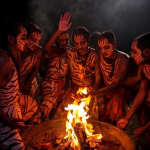 For the men and boys who take part in the dance, it is an extraordinary time for a period of a day or two atleast where they cease to be ordinary people engaged in the mundane routines of everyday life. Donning the tiger stripes is a form of worship, a mode of penance, and a path to wish fulfillment.